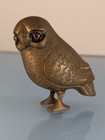 Vintage Mid Century Solid Brass Owl Of Athena Handmade Etched Sculpture Figurine