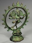 India Indian Hindu Bronze Shiva Nataraja Figure W/ Green Polychrome Ca. 20th C.