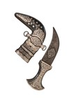 Indo Persian Arabic Jambiya Dagger With Silver Koftgari Work And Damascus Blade