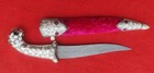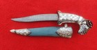 Indo Persian Silver Kofthgiri Worked Knife Dagger Damascus Steel Blade & Sheath