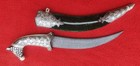 Lot Of Two Indo Persian Brass Wire Worked Knife Dagger Lion Head L- 13”