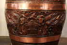 Antique French Oak Wooden Planter Hand Carved Copper Barrel -ships Ddp To Usa