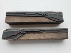2 Old Print Letterpress Printer Printing Type Block Antique Rifle Gun Decor Vtg