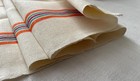 4 Antique French Homespun Linen Kitchen Towels Torchon Red Stripe Mono #2
