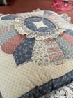 Lot Of 2 Vintage Matching Blue Quilted Look Patchwork Pillows W/ Ruffles/lace