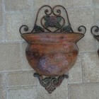 Two Antique Wrought Iron & Copper Hanging Wall Planters
