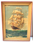 Vintage Clipper Ship Print Framed Nautical Antique Picture Wood Frame