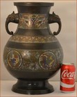 Antique Chinese Champleve Bronze Floor Vase 15"+ Tall Qing Nice Old Patina