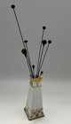 Vintage - Nippon Hand Painted White & Gold Hatpin Holder W/8 Hatpins