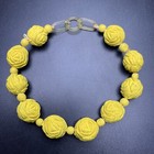 Antique Or Vintage Carved Rose Bead Bracelet Early Plastic ? Yellow Flower