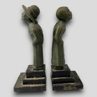 Antique Pair Nuart Nyc 7" Tall Bronzed Spelter Shepherd Dog Bookends C. 1930