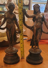 Antique Spelter Bronze Female Statues Pair Victorian Art Nouveau Figures