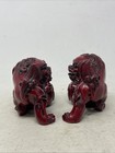 Pair Of Vintage Chinese Lucky Foo Dog Hand Carved Red Heavy Resin Figurines (o8)