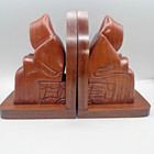 Cheetah Spotted Leopard Hand Carved African Pair Of Wooden Book Ends Vintage