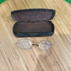 Antique Round Wire Rimmed Spectacles Eyeglasses In Hard Case Mk'd Pat App For