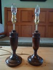 Pair Of Vintage Antique Solid Oak Table Lamps Full Rewire With New Fittings Vgc