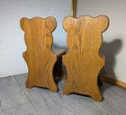 Vintage Pair Of Rustic Solid Oak Wood Child Doll Teddy Bear Chairs Stools
