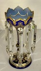 Pair Victorian Blue Cut To Clear Cased Glass Mantle Lusters Gold Gilded Read