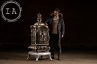 Antique Cast Iron Parlor Stove Art Deco Chrome Plated Base Ornate Heavy