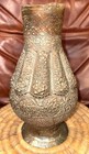 Antique Copper Vase Engraved Persian Middle East 8 Inch