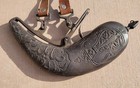 Antique Persian Islamic Bronze Engraved Black Gun Powder Flask
