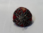 Antique Victorian Sewing Pin Needle Cushion Strawberry Emery W/ Silver Top