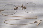 Pair Of Gold Filled Pince-nez Antique Glasses Spectacles Bifocals With Chain