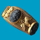 Rare Victorian Antique Silver Malachite Citrine Scottish Buckle Bracelet Green