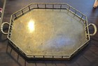 Vtg Large Brass Octagon Bamboo Rim Serving Tray Hollywood Regency 27” Wide Mcm