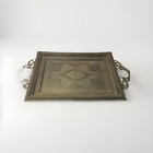 Vintage/antique, Large Solid Brass Etched Tray With Ornate Handles, 21”l X 12”w