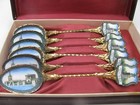 Antique Imperial Russ Bronze With Enamel Gold Plated Spoons Original Box