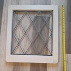 Antique Leaded Glass Square Window Sash Diamond Pattern Salvage Wood Frame
