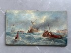 Antique Original Painting Landscape, Maritime, Boats, Sea, Waves Signed ????