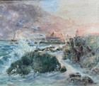 Antique Marine Coastal Seascape Landscape Oil Painting Old Vintage Bigelow 1945