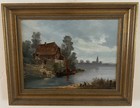 Antique Dutch Oil Painting Windmill Seascape Signed C. 1880 Nautical 28" X 42"
