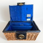 Vintage Wooden Sewing Basket - Basket Weave Wicker Box Fabric Center