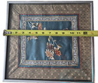 2 Vintage Framed Chinese Embroidered Silk Art Pictures Tapestry Set 16x16”