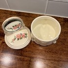 Vintage Porcelain Footed Ring Trinket Box Pink Roses Gold Accent Vanity Dresser
