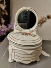 Vintage Jewelry Trinket Box Floral Dresser With Mirror Ring Vanity Ceramic Japan