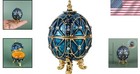 2.6-inch Hand-painted Peacock Blue Faberge Egg Jewelry Box – Vintage Collectible