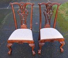 Pair Solid Carved Mahogany Chippendale Style Ball & Claw Dining Room Side Chairs