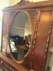 Antique Mahogany Dining Set, Table & 10 Upholstered Chairs, Carved Wood