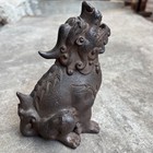 Old Tibetan Buddhism Cast Iron Roar Towards The Sky Auspicious Beast Ornament