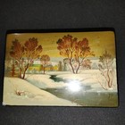 Russian Lacquer Hand Painted Paper Mache Signed Vintage Trinket Box Winter Scene