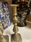 2 Antique Brass Push Up Candlesticks Excellent 19th