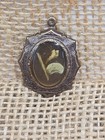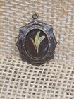 Antique Victorian Pressed Metal Resin Set Flower Pendant 1.5"