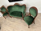 Antique Victorian Blue Velvet 3 Piece Parlor Set