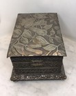 Antique Victorian Silver Plated Engraved Wood Trinket Jewelry Sewing Glove Box