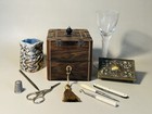 Antique English Victorian Marquetry Inlay Tea Caddy Sewing Box Desk Storage