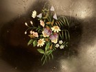 Antique Black Lacquered Jewelry Box Hand Painted Flower Motif Victorian
